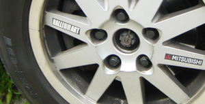 タイヤ BS:RE-01 205/60-15、荒れた路面で走る事が多いので扁平タイヤはムリなので。このタイヤの特徴としては、兎に角ケース剛性が高いと言う事である。以前はいていたタイヤ(205/50-16、BS RE-010、BS V-GRID、MI GTXヴィラージュ、YH M7R)で鈴鹿サーキットを走行した際どのタイヤでもサイドウォールまで接地していたのだが、このタイヤではインチダウンしたにもかかわらずサイドウォールは接地しなかったぐらいである。またコンパウンドはSタイヤに近い融け方をしていた。その分乗り心地はかなり硬めで、それまでのREシリーズとは全く違ったテイストになっている。グリップ力についてはサイズが違うのではっきりとは言えないが、他のタイヤ(今時のYH ネオバ等)よりも限界は特に高いわけではないが滑り出してからのトラクションの掛かりが良いように思われる。コレは60サイズだからかもしれないが…どちらかと言うと低扁平タイヤとの相性が良いと思う。 ホイール マツダスピード:MX-6用op 6.5J-15インチ off+45、限界領域のグリップ力よりもスライドを始めてからのコントロール性を高める為、15インチホイールを探していたところコレが出てきたので。インチダウンした事によるバネ下重量の軽減なども狙っている、またタイヤの価格が安いのは非常にありがたいところである(RE-01、4本でコミコミ5万円を切る)。マツダスピードのステッカーをはがし自作のステッカーでミツビシ製風に。最近のマツダのハブ径はミツビシと同じ寸法(89mm?)なのでピッタリと収まる。ひょっとしてOEM供給か?本当なら有名どころの軽量ホイールをはかせれば良いのかも知れないが、コスト的に不可能な事と、純正(op)ホイールの頑丈さがよかった。(軽量ホイールは特にヒットさせたりしていなくてもほとんどの物がひずんでいたりするので要注意。) |