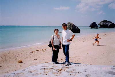 No.008 2003 沖縄旅行記 完結 南国の青い海 後ろのガキがいい味を 出している |