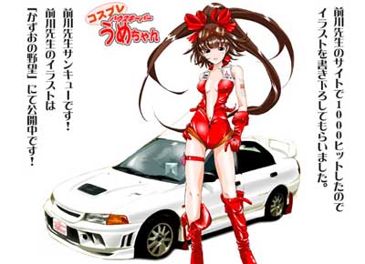 No.023 2004 前川先生の書き下ろし。 ガレージアオヤマ サービスフロント(掲示板) の看板娘うめちゃんです。