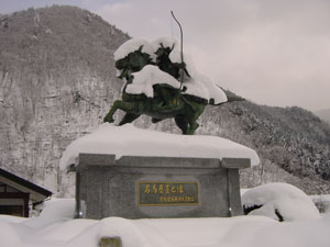 「名馬、磨墨君も雪化粧」 |