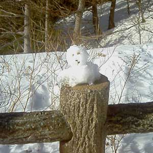 仕方が無いので路肩の雪で雪だるまを作って帰ってきました。